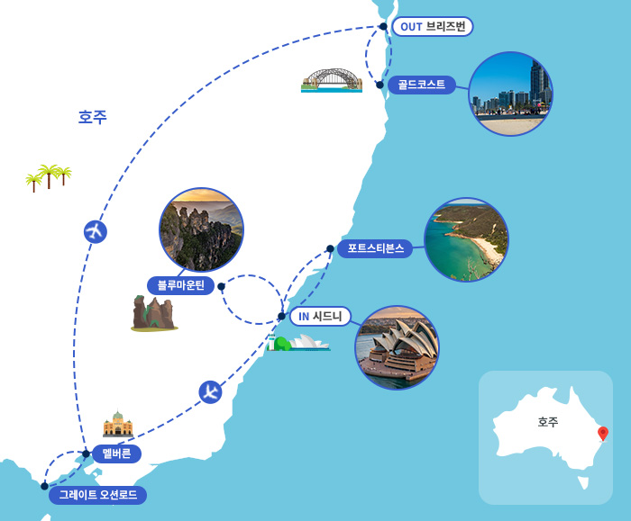 • 정통★출발확정★ 호주 시드니/멜버른/골드코스트 완전일주 9일 (전일정4성급/블루마운틴/그레이트 오션로드)