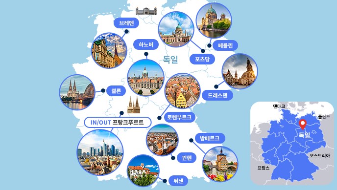 인천-프랑크푸르트(1)-쾰른-하노버(1)-브레멘-베를린(2)-포츠담-드레스덴(1)-밤베르크-뮌헨(1)-퓌센-로텐부르크(1)-프랑크푸르트-기내(1)-인천