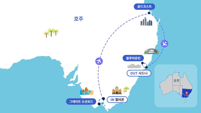 - 아시아나 시드니/멜버른 직항편 이용 (시드니 IN - 멜버른 OUT)