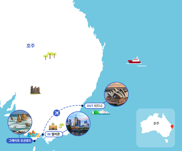 [07:30] 국내선 VA815편(예정) 으로 멜버른 출발 (비행시간 약 1시간 30분) [08:55] 시드니 도착 후 가이드 미팅