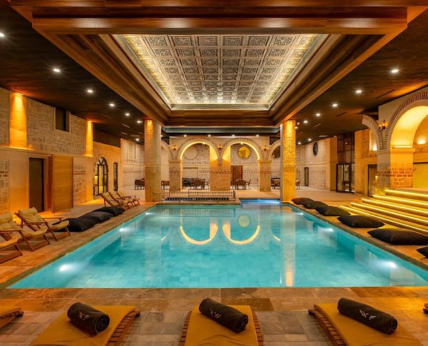 ② 도하 테르말 헬스 앤 스파, 파묵칼레 (Doga Thermal Health & Spa, Pamukkale) - 파묵칼레 주변 카라하이트 온천수 마을에 위치한 온천 호텔 중 최고로 손꼽히는 호텔- 로비와 연결된 중앙 온천 풀장, 야외 노천탕, 실내 온천 등 다양한 테마의 온천을 지닌 호텔- 현대적이고 넓은 객실의 럭셔리 5성급 호텔