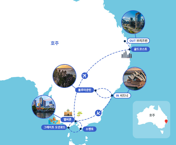 - 호주 내 국내선 2회 이동으로 차량 이동 최소화로 편안함 UP