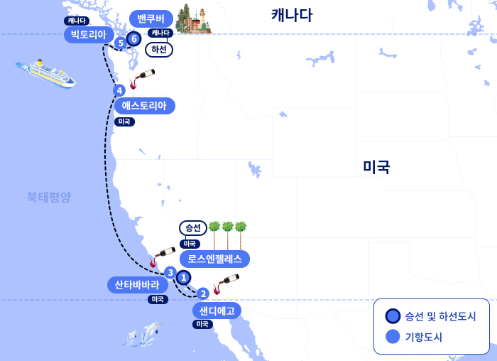 [일 정] 밴쿠버(캐나다) [05:30] 밴쿠버 입항, 선 내 조식 후 하선 수속 [09:00] 가이드 미팅