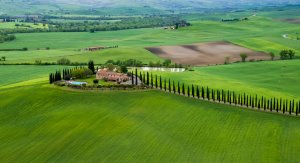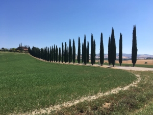 피엔차(Pienza) ▶ 사이프러스 나무가 늘어선 토스카나 발도르차 평원의 차창 경치 조망